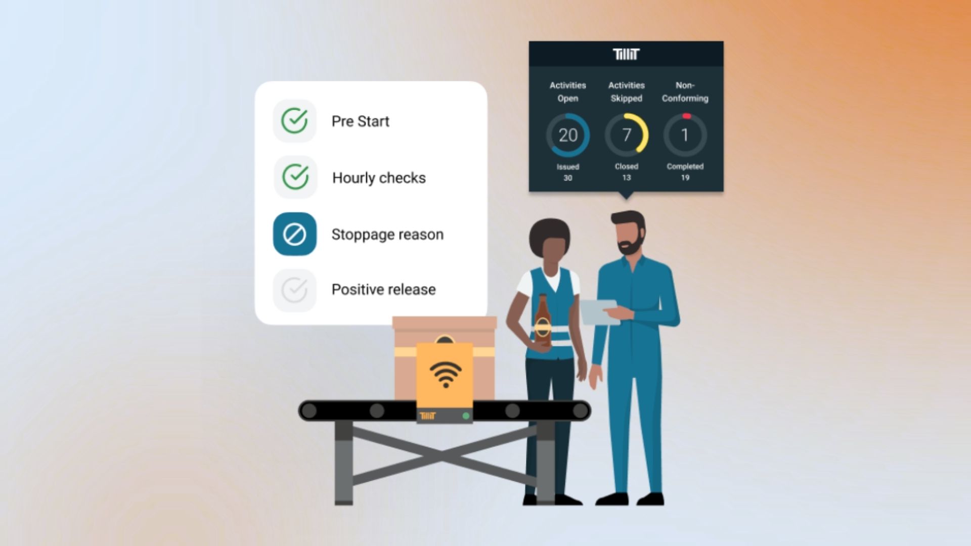 Tedious, time-consuming manual checks are a thing of the past with TilliT. Pre-start processes, equipment cleaning, set-points, and more are all available at your operators’ fingertips, enabling quicker setup and fast-tracked maintenance and supervisor sign-offs – before moving to order readiness.